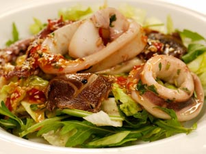Nakrájené sépie smícháme s najemno nakrájenou citronovou trávou, koriandrem, přidáme olivový olej a sůl. Necháme chvilku odležet a poté zprudka a krátce opečeme na olivovém oleji, necháme vychladnout.