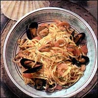 Mušle očistíme, krevety vyloupeme a zbavíme střívka, olihně vyčistíme a nakrájíme na tenké kroužky. Dáme vařit těstoviny na ,,al dente”. Na pánvi rozehřejem olivový olej, přidáme česnek, krevety, olihně a nakonec mušle, promícháme, zastříkneme vínem a přikryjeme poklicí. Dusíme 3-5 minut. Plody moře zakápneme citrónovou šťávou a přidáme nasekanou petržel. Těstoviny scedíme a přimícháme k darům moře. Dobře ochutíme solí a pepřem.